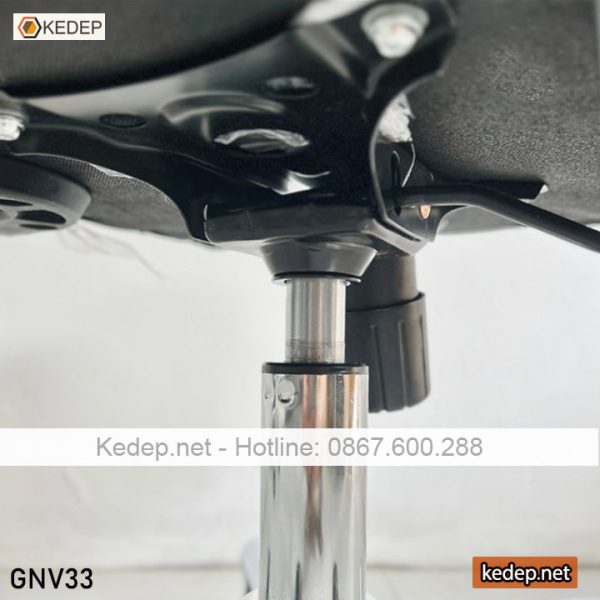 Hệ thống chân xoay linh hoạt được chế tạo từ thép mạ crom sáng bóng, vừa đảm bảo độ bền chắc vừa giúp di chuyển dễ dàng trong không gian làm việc. Bên cạnh đó, ghế còn được trang bị bộ điều chỉnh độ cao giúp phù hợp với nhiều dáng người và bàn làm việc khác nhau. Đệm ngồi êm ái, đàn hồi tốt, mang lại cảm giác dễ chịu ngay cả khi làm việc trong thời gian dài. Ghế xoay nhân viên văn phòng GNV33 không chỉ là một chiếc ghế văn phòng mà còn là người bạn đồng hành lý tưởng cho những ai mong muốn một không gian làm việc thoải mái, chuyên nghiệp.